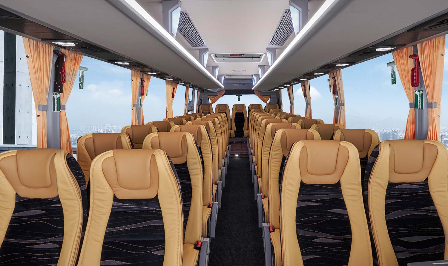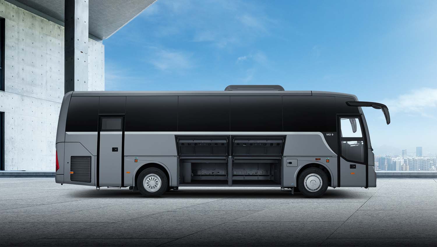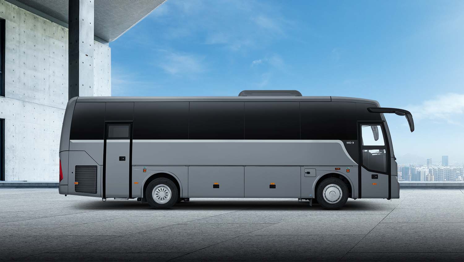 Mit einer Kapazität von bis zu 39 Fahrgästen und großzügigem Gepäckraum ist der MD9 ideal für Langstreckenreisen geeignet. Sein leistungsstarkes hlVAC- System sorgt ganzjährig für optimale Klimabedingungen, während doppelt verglaste Seitenfenster hervorragende Schalldämmung und bessere Sicht bieten.