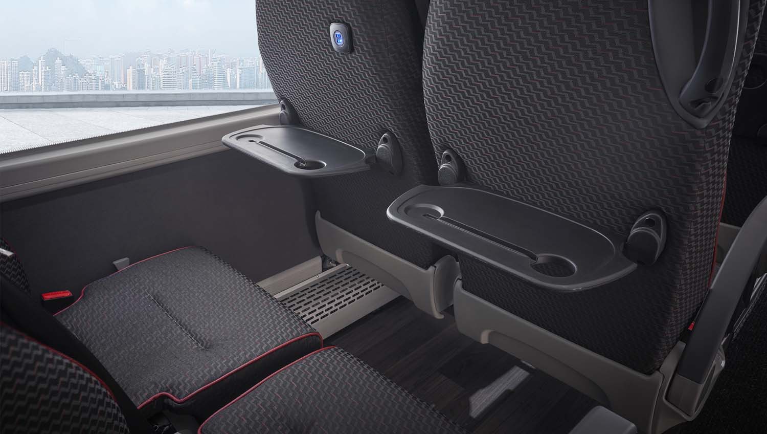 HD interior is designed for ultimate comfort, functionality, and efficiency. Ergonomic parcel racks provide ample storage. Seating is well-appointed with dual USB-A and USB-C power outlets, cup holder for driver, magazine nets, footrests, and a variety of premium leather and fabric upholstery options.The powerful HVAC system maintains a comfortable climate throughout the journey.