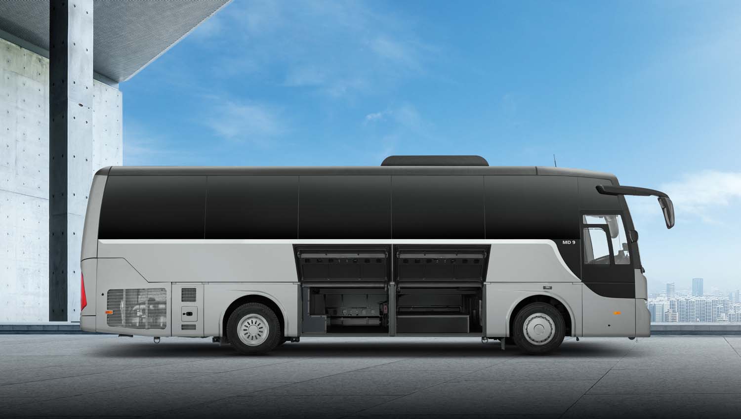 The MD9 RHD is ideal for long-distance travel with a capacity of up to 39 passengers and a large luggage compartment. The powerful HVAC system maintains the ideal climate throughout the year, while double-glazed side windows provide advanced sound insulation and clear visibility.